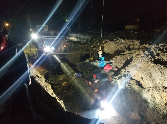 為最大限度降低停水對周邊企業(yè)及居民生活的影響,充分保障荊東大道管道遷改工程的后續(xù)建設(shè)工作,在碰頭過程中,安裝公司高度重視,項目負責人嚴格督戰(zhàn)現(xiàn)場,在保障安全文明施工的同時搶抓施工進度,施工人員連軸作業(yè)15個小時,最終于當日22:00完工恢復(fù)通水。