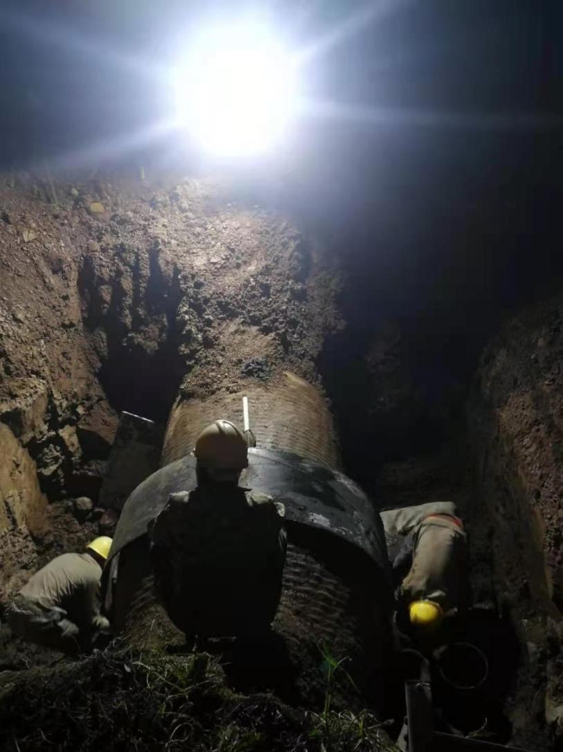 節(jié)假日的堅(jiān)守,只為保障居民正常用水?!拔逡弧毙¢L(zhǎng)假期間,安裝公司施工團(tuán)隊(duì)放棄與家人的團(tuán)聚,默默堅(jiān)守在施工一線,用自己的實(shí)際行動(dòng)確保了荊門(mén)城區(qū)的居民正常用水安全。5月1日晚21:00,經(jīng)過(guò)割接施工方案優(yōu)化,物資儲(chǔ)備等一系列前期準(zhǔn)備后,DN1200源水管線管網(wǎng)開(kāi)始降水,搶口工作正式開(kāi)始,經(jīng)過(guò)近5個(gè)小時(shí)的精心施工后,5月2日凌晨3時(shí)左右,隨著最后一塊開(kāi)孔封蓋焊接結(jié)束,DN1200源水管線搶扣工作正式宣告完成。