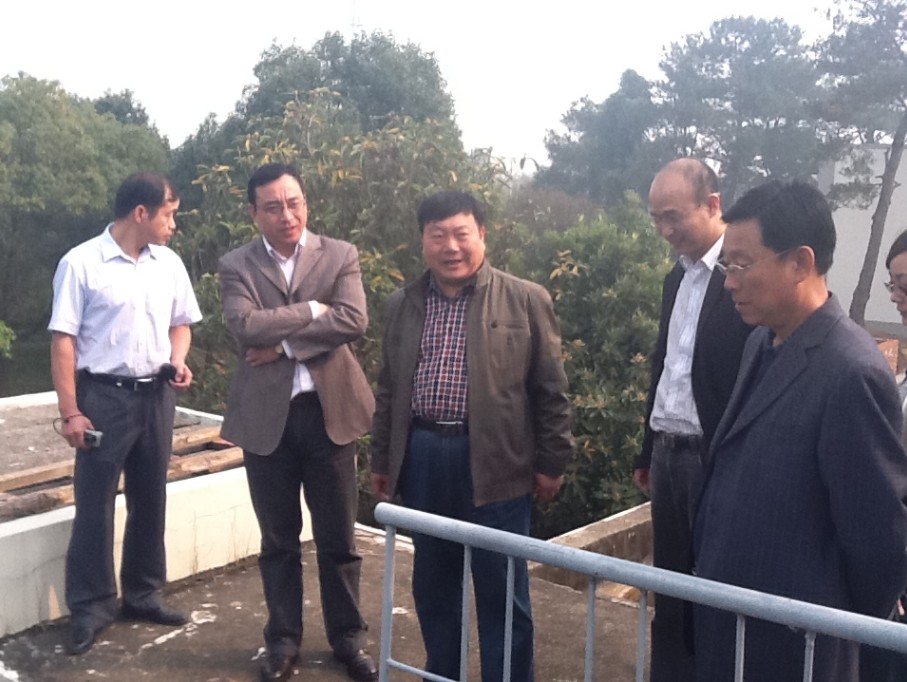 10月21日,省物價(jià)局環(huán)境與資源價(jià)格處吳賢武處長(zhǎng)(左三)、成本調(diào)查監(jiān)審分局吳勤民科長(zhǎng)(左二)在市物價(jià)局局長(zhǎng)汪順彪(右二)、總公司黨委書(shū)記陳永根(右三)陪同下視察市二水廠。