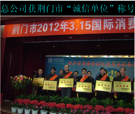 總公司獲荊門市“誠(chéng)信單位”稱號(hào)