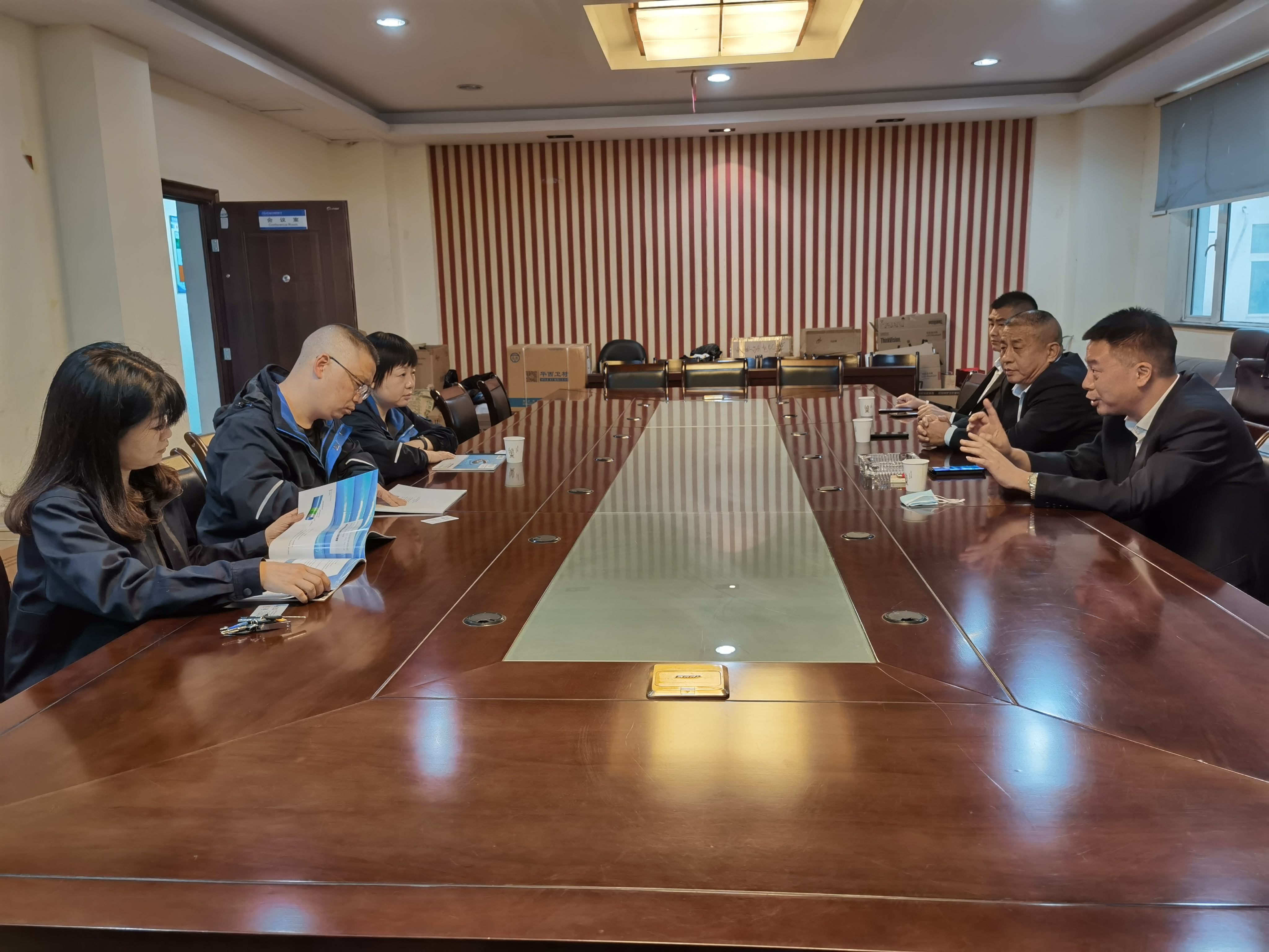 嚴(yán)巖對孝感水司一行的到來表示熱烈歡迎,她先是簡要介紹了集團(tuán)公司組織架構(gòu)和物資公司基本情況,又重點(diǎn)分享了集團(tuán)在企業(yè)文化建設(shè)、物資供應(yīng)管理等方面的成效做法。作為兄弟單位,孝感水司就新型給水管道材料應(yīng)用技術(shù)進(jìn)行深入交流,在大致了解集團(tuán)實(shí)際情況后,對管道敷設(shè)施工工藝、施工技術(shù)以及降本增效等相關(guān)工作提出了寶貴建議。物資公司負(fù)責(zé)人鄧澤祥表示,水務(wù)集團(tuán)物資公司秉承集團(tuán)企業(yè)精神,打造學(xué)習(xí)型組織,樂于學(xué)習(xí),樂于交流,通過互動,啟發(fā)了新的思路。下一步,物資公司將在創(chuàng)新工作方法上下功夫,研究國家新政策,了解行業(yè)新動態(tài),進(jìn)一步提升倉儲管理和應(yīng)急保障能力。
