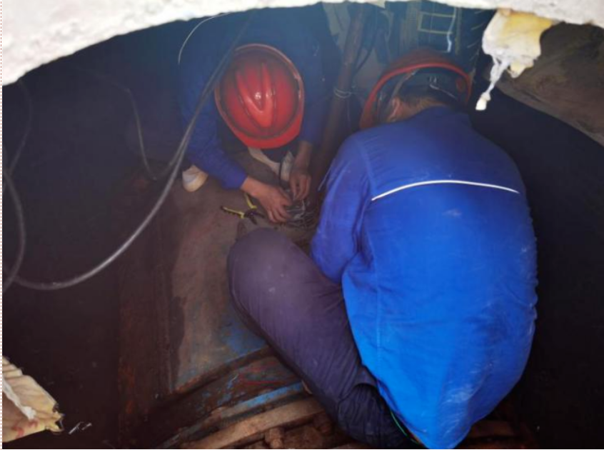 廠領(lǐng)導(dǎo)在綜合評估后,同意其思路,并作安全操作提醒。雖早有心理準(zhǔn)備,但在打開接線盒后的瞬間,李為龍等人還是倒吸一口涼氣。他們發(fā)現(xiàn)整個接線盒內(nèi)部被深色不透明的膠體充滿,無法掌握線路走向。短暫思索后,他們發(fā)揮水務(wù)人不怕苦、能戰(zhàn)斗的精神,嘗試按廠家給出建議,用熱風(fēng)槍加熱密封膠,但事與愿違,效果并不理想,密封膠沒有自動融化流出。李為龍“改巧為笨”,在加熱的同時用小刀清理變軟的膠體。該處操作空間狹小,且不能損壞內(nèi)部的線路和接線端子,必須凝神聚力,是個“精細(xì)活”“體力活”。即便同事們輪番上陣,依然個個汗如雨下。功夫不負(fù)有心人,眾人合力熬過“漫長的”4小時,最終完成了既定任務(wù)。