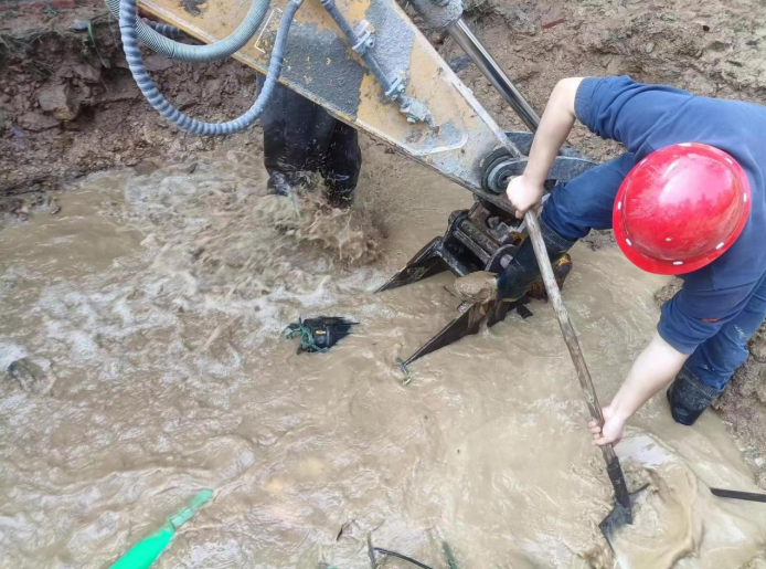 經初步判斷,原因是地基沉降不均勻導致管道應力過大。因化工廠內地下管線復雜,荊襄公司結合實際迅速制定搶修方案,通過機械和人工配合作業(yè)。開挖過程中,管道中余水不停滲到基坑,需要不間歇抽水、排水。雖然氣溫已近冰點,維修人員沒有絲毫退縮,在齊膝的積水中奮戰(zhàn)兩個多小時,完成路基開挖。