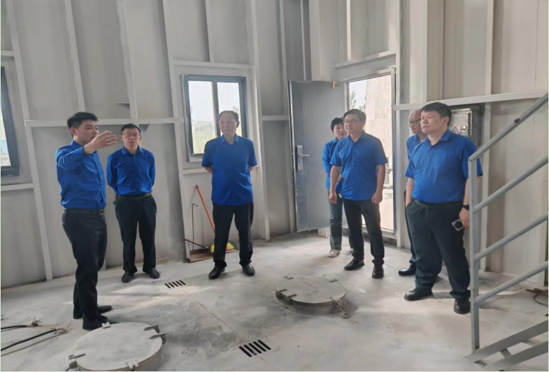 圖為董事會一行查看取水浮船試運(yùn)行調(diào)試現(xiàn)場