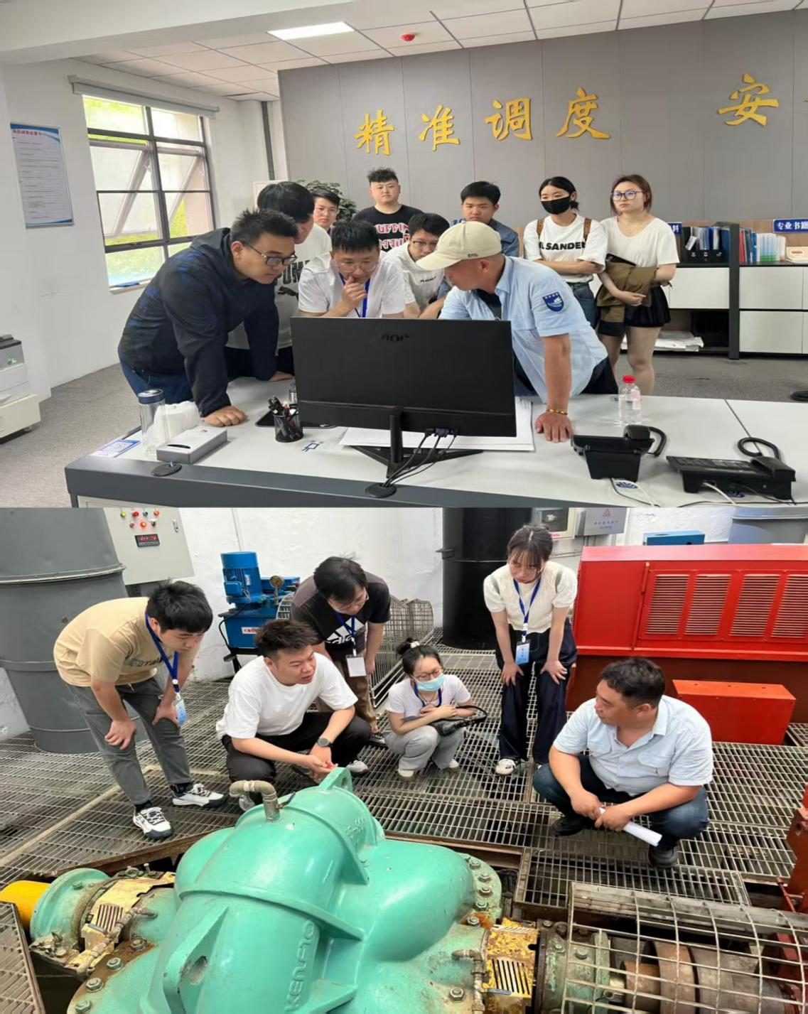 圖為新員工學習巡視關(guān)鍵要點、監(jiān)測設(shè)備操作及水質(zhì)生產(chǎn)流程情況