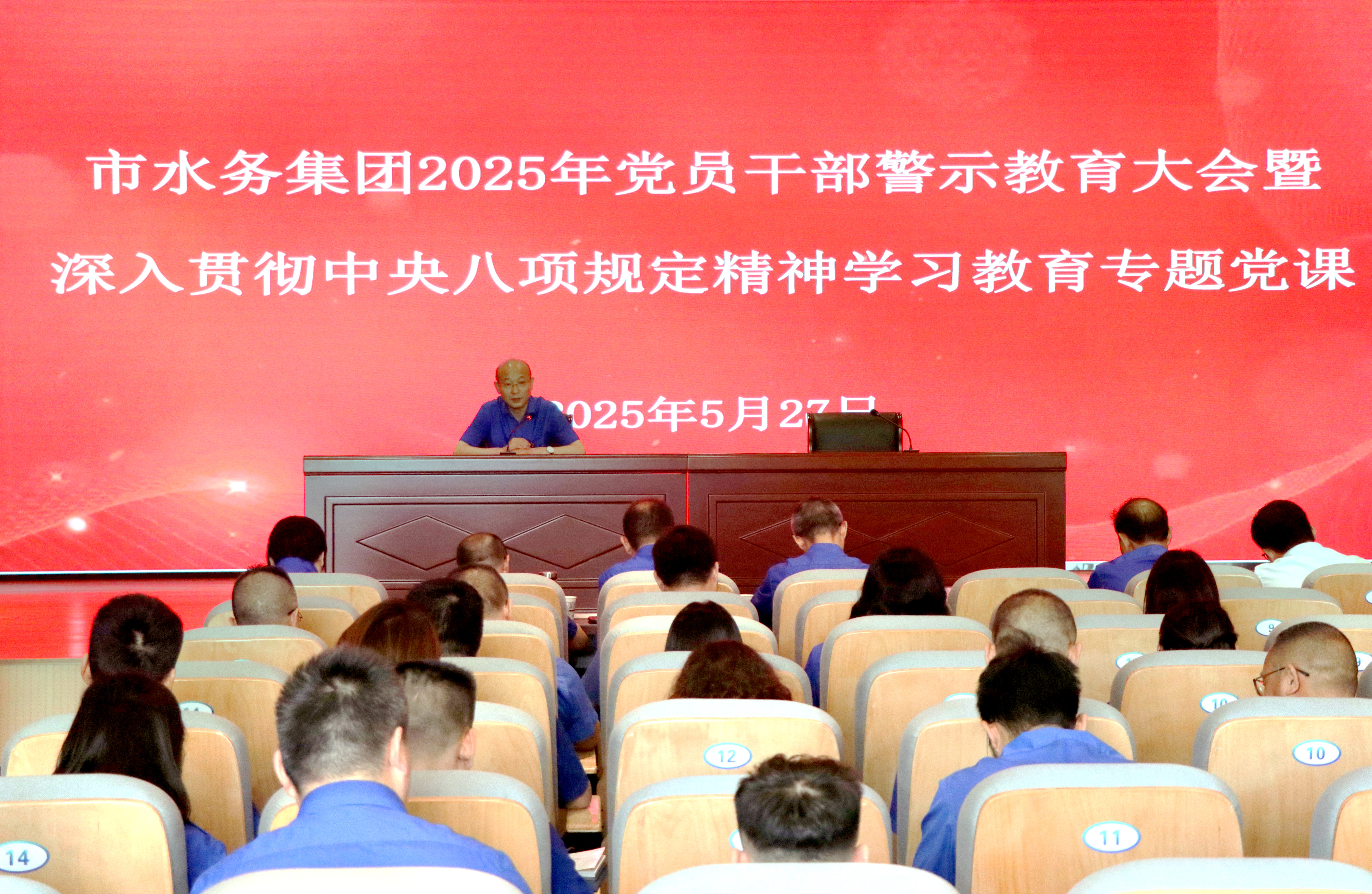 按照省、市關(guān)于深化中央八項(xiàng)規(guī)定精神學(xué)習(xí)教育相關(guān)要求,5月27日上午,市水務(wù)集團(tuán)召開黨員干部警示教育大會(huì)暨深入貫徹中央八項(xiàng)規(guī)定精神學(xué)習(xí)教育專題黨課。會(huì)議組織觀看警示教育片,集團(tuán)黨委書記、董事長陳永根講授專題黨課,集團(tuán)黨委委員、紀(jì)委書記劉高軼主持會(huì)議。集團(tuán)全體高層領(lǐng)導(dǎo)、中層干部及機(jī)關(guān)黨員參加會(huì)議。
