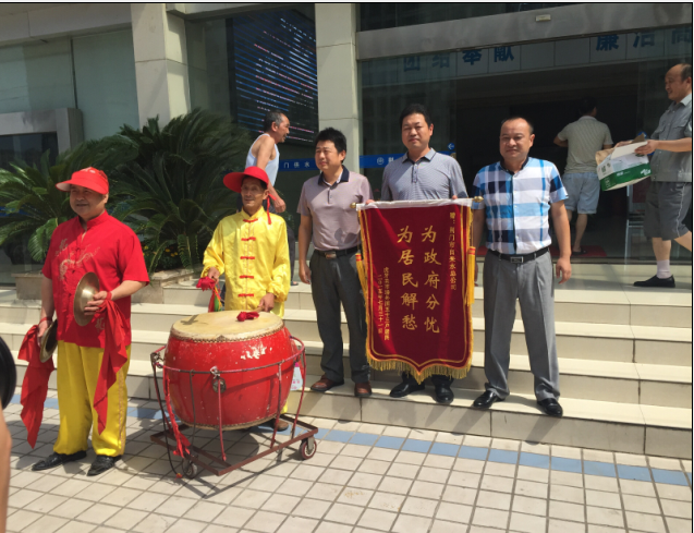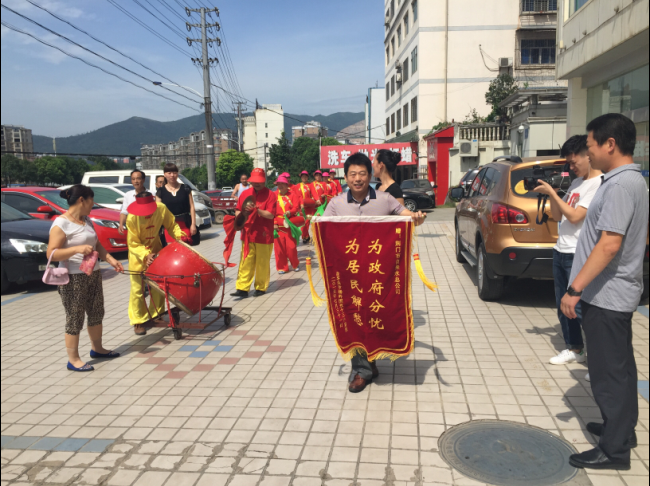 7月31日,虎牙關(guān)社區(qū)和用戶代表組織腰鼓隊(duì)到總公司送錦旗致謝。據(jù)悉,掇刀城南新區(qū)金苑大市場主、分水管網(wǎng)嚴(yán)重老化,水管破損而致停水。市供水總公司客服部門快速勘測報(bào)裝,維修處迅速組織施工,并調(diào)派應(yīng)急供水車在改造期間為商戶送水。