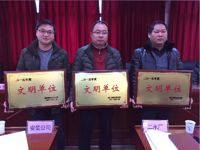 陳總經(jīng)理還對(duì)2016年重點(diǎn)工作進(jìn)行了部署: 加快推進(jìn)降差工作;加快推進(jìn)供水安全保障體系建設(shè);加快推進(jìn)自備水源整合;加快推進(jìn)企業(yè)信息化建設(shè);加快推進(jìn)輔業(yè)實(shí)體“脫困”;積極探索薪酬制度改革;理順中心城區(qū)供水設(shè)施建設(shè)投資體制;進(jìn)一步加強(qiáng)黨建工作等,