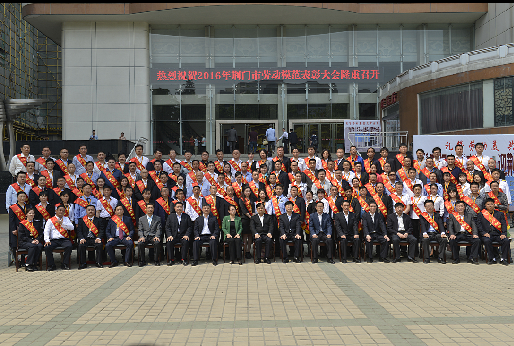 荊門市勞動模范、供水總公司黨委書記、總經(jīng)理陳永根(二排右三)在會議現(xiàn)場