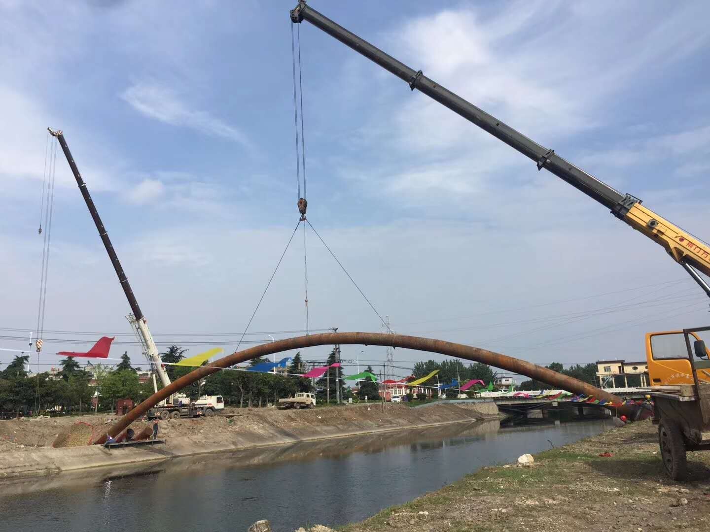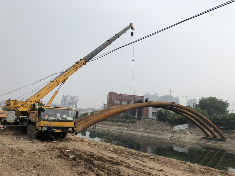 6月2日,跨總干渠DN800拱形鋼管吊裝合龍,標志著荊門市供水總公司三水廠跨總干渠吊裝工程順利完成。至此,跨總干渠拱形鋼成為總干渠上又一道新的“彩虹橋”風景。