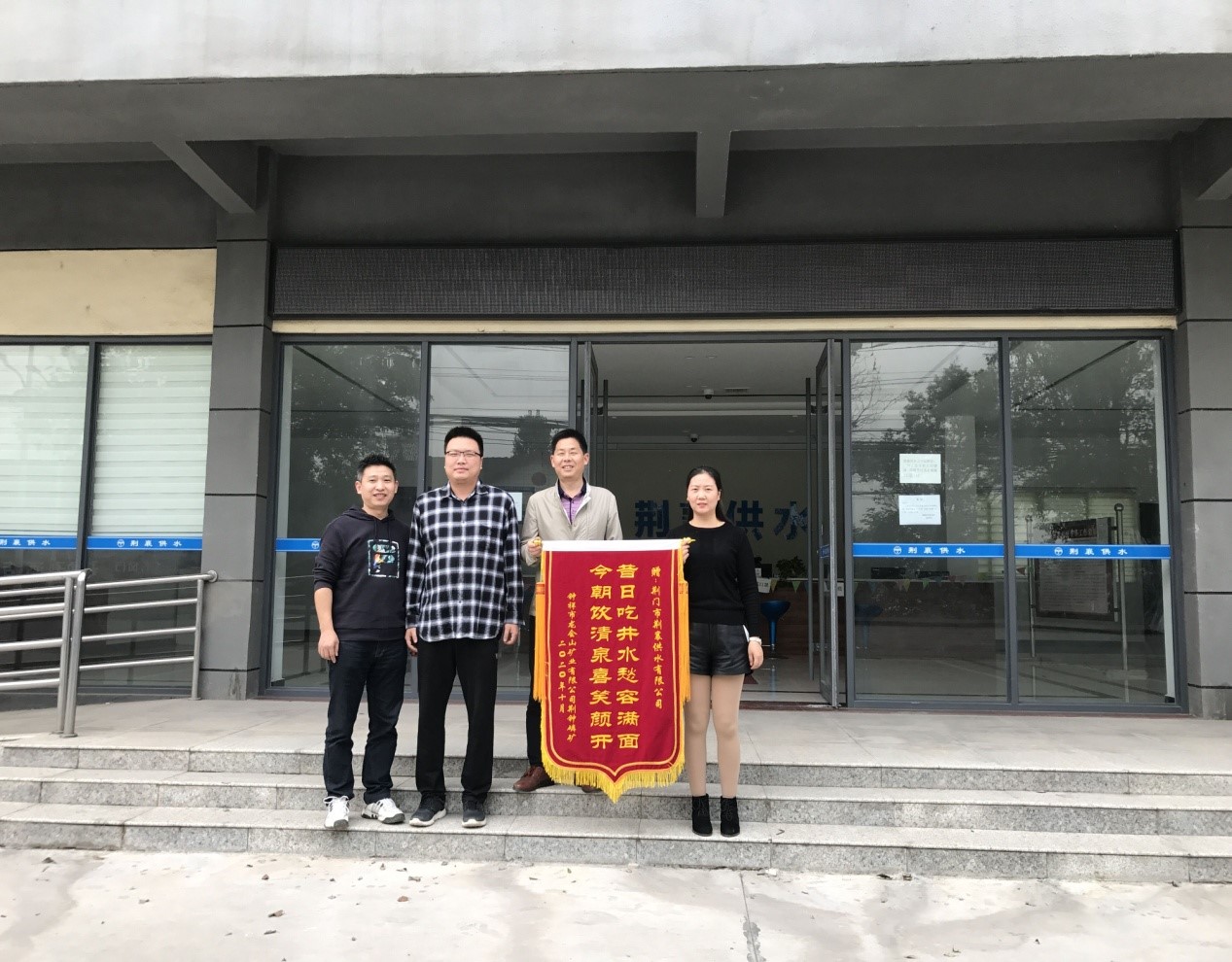 10月10日下午,鐘祥市龍會(huì)山礦業(yè)有限公司荊鐘磷礦礦長(zhǎng)李綱專程來(lái)到荊襄供水公司,送來(lái)一面寫(xiě)有“昔日吃井水愁容滿面 今朝飲清泉喜笑顏開(kāi)”的錦旗,以表達(dá)對(duì)該公司為其高效開(kāi)通自來(lái)水的謝意。