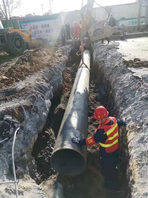 圖為荊門城區(qū)供水主管下穿培公大道施工現(xiàn)場