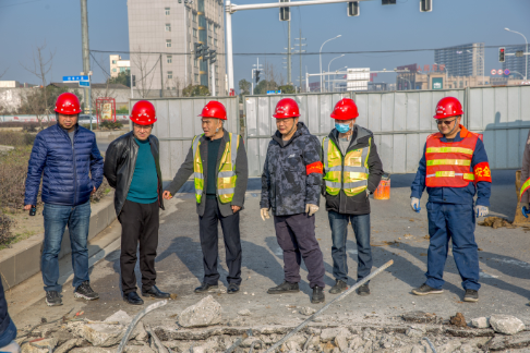 2月14日(農(nóng)歷正月初三)一大早,2臺(tái)挖掘機(jī)、2臺(tái)貨車、1臺(tái)工程車、1臺(tái)送水車、1臺(tái)小型鏟車陸續(xù)開到了現(xiàn)場,2臺(tái)發(fā)電機(jī)組和相關(guān)材料也運(yùn)到了現(xiàn)場。7時(shí)許,近30名工作人員集結(jié)完畢。羅紅勝負(fù)責(zé)現(xiàn)場施工。他將工作人員分成交通組和施工組。交通組先擺放錐形安全桶引導(dǎo)交通,再用圍擋將施工區(qū)域隔離出來。隨后,交通組工作人員守在幾個(gè)路口引導(dǎo)交通。施工組也很快行動(dòng),路面切割、破碎,鋼筋剪切,碎渣拖運(yùn)……所有工作有序開展。