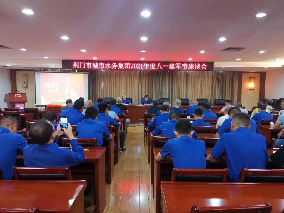為慶祝中國人民解放軍建軍94周年,發(fā)揮荊門水務(wù)擁軍護(hù)軍的光榮傳統(tǒng),7月26日,荊門市城市水務(wù)集團(tuán)有限公司召開“八一”建軍節(jié)座談會(huì),邀請(qǐng)了集團(tuán)五十多位退伍軍人職工歡聚一堂。會(huì)議由黨委委員、工會(huì)主席馬兆芳主持,集團(tuán)黨委副書記、總經(jīng)理王小鋒參加了本次會(huì)議。